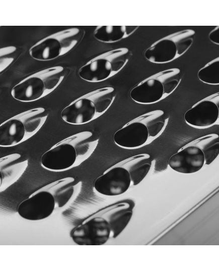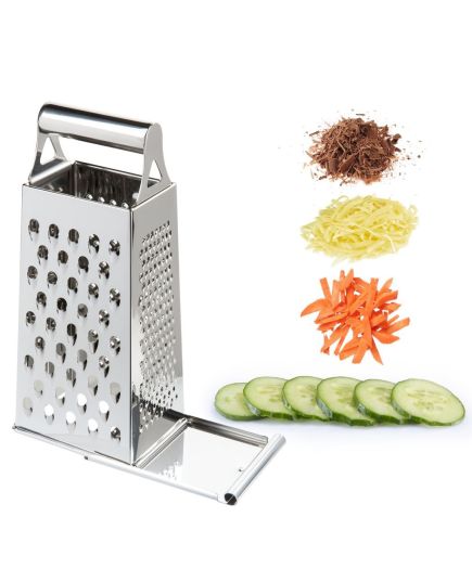 - Στιβαρή Κατασκευή: Πολύ συμπαγής τρίφτης κουτί (very solid box grater) από υψηλής ποιότητας ανοξείδωτο χάλυβα.