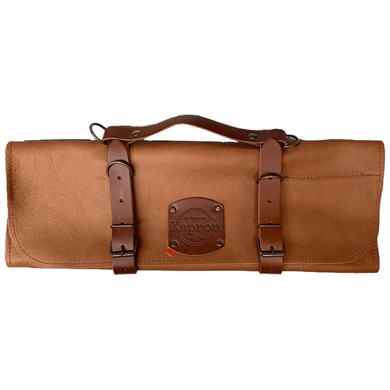 27212 (code) Η δερμάτινη τσάντα για μαχαίρια Xapron είναι χειροποίητη από εξαιρετικά λαδωμένο, γνήσιο δέρμα βουβάλου. Γνήσιο είναι το δέρμα όπου η επιφάνεια έχει παραμείνει εντελώς άθικτη. Αυτός ο φάκελος μαχαιριών από δέρμα βουβάλου διασφαλίζει ότι τα μαχαίρια σας αποθηκεύονται και μεταφέρονται με ασφάλεια. Ιδανικό για μαθητευόμενους σεφ, φοιτητές εστίασης και επαγγελματίες σεφ. Το τέλειο δώρο για τους λάτρεις του μπάρμπεκιου και της κουζίνας.