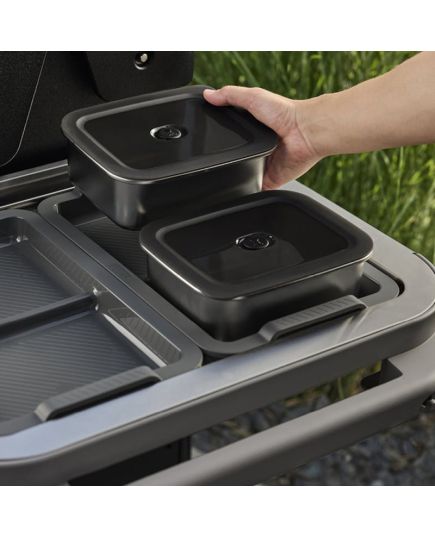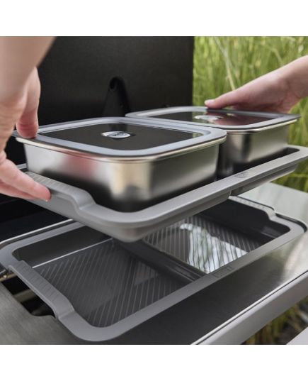 Προετοιμάστε, αποθηκεύστε και μεταφέρετε τα υλικά ψησίματος με ευκολία χρησιμοποιώντας τα Δοχεία Προετοιμασίας Φαγητού Weber Works™ (3400260). Αυτό το ευέλικτο σετ της Weber περιλαμβάνει δύο (2) δοχεία από ανοξείδωτο χάλυβα, το καθένα με χωρητικότητα 1,8lt, και είναι σχεδιασμένο για να κάνει το BBQ πιο οργανωμένο από ποτέ. Είναι το ιδανικό αξεσουάρ για να διατηρείτε τα υλικά σας φρέσκα και οργανωμένα μέχρι τη στιγμή του ψησίματος.
