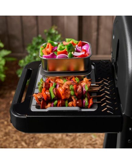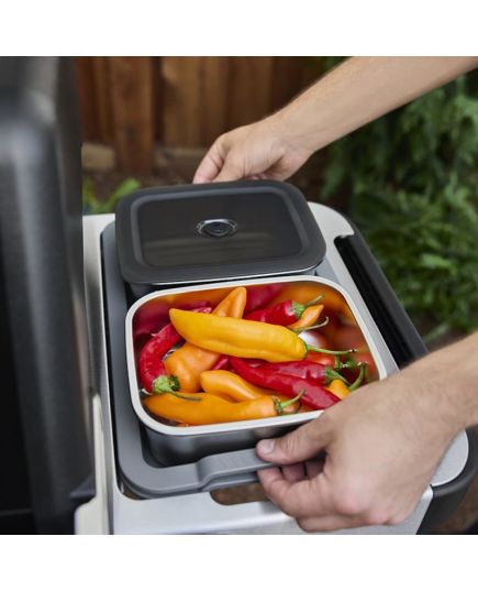 Τα δοχεία λειτουργούν με το Δίσκο Σερβιρίσματος Weber Works™ (πωλείται χωριστά) ο οποίος ταιριάζει στο άνοιγμα του πλαϊνού τραπεζιού Weber Works™ σε επιλεγμένες ψησταριές, πλάκες ψησίματος και ψησταριές ξύλου pellet Weber, δημιουργώντας ένα σταθμό προετοιμασίας.
