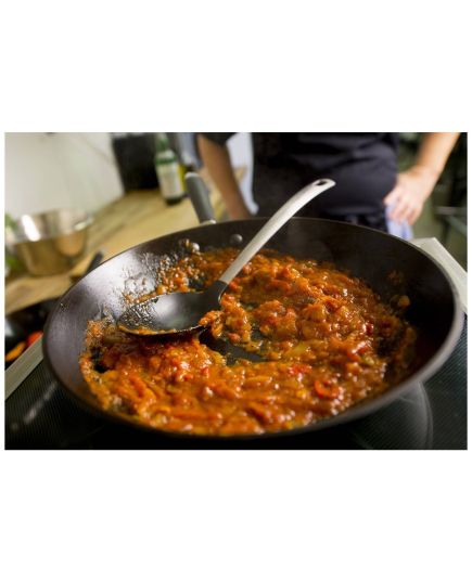 Εργονομική λαβή που δένει όμορφα πάνω στο σκεύος, κατασκευασμένη από ανοξείδωτο ατσάλι και σιλικόνη για ακόμα καλύτερο και πιο σταθερό κράτημα. Η σιλικόνη αντέχει έως τους 225 ?C και έτσι το σκεύος μπορεί να χρησιμοποιηθεί και στο φούρνο.
